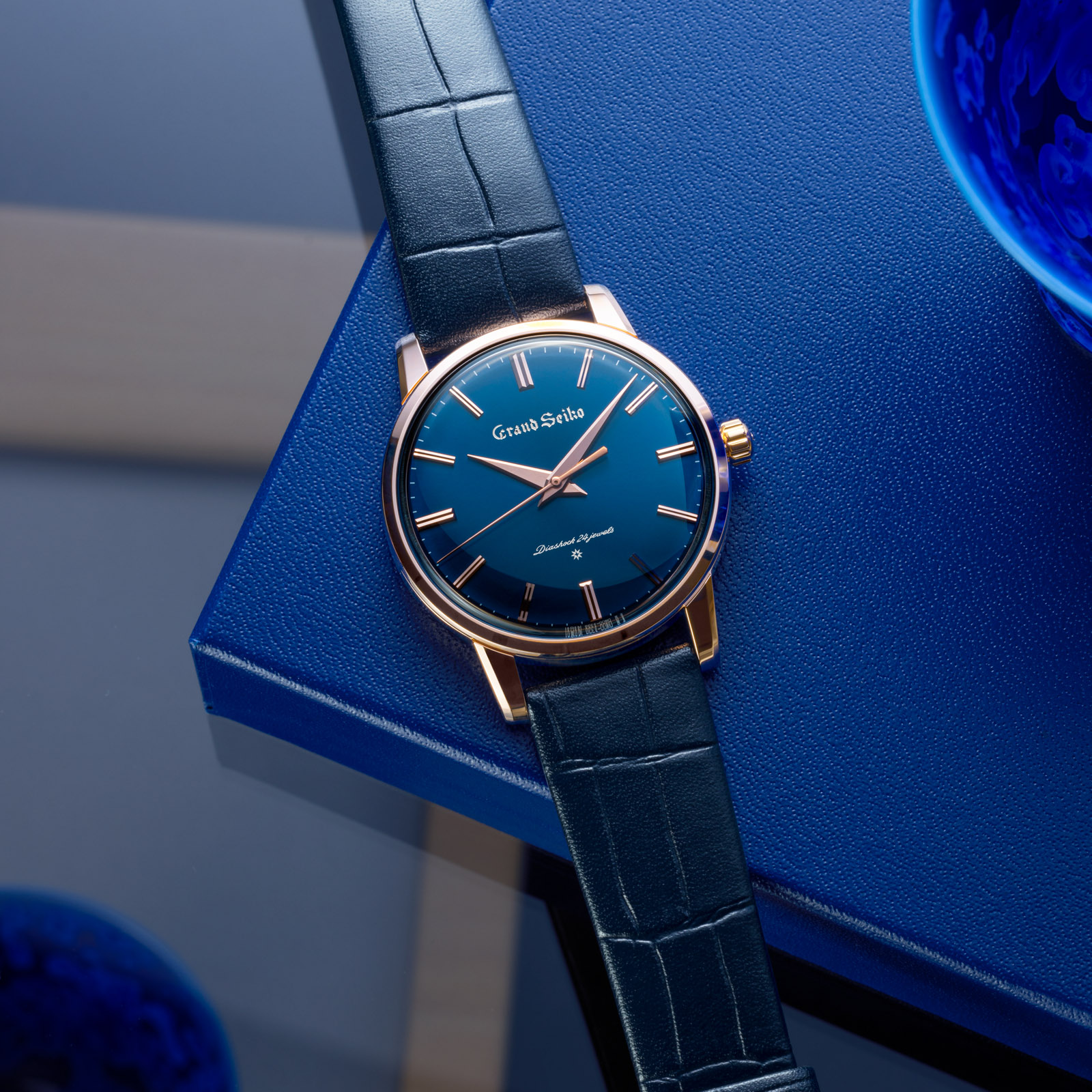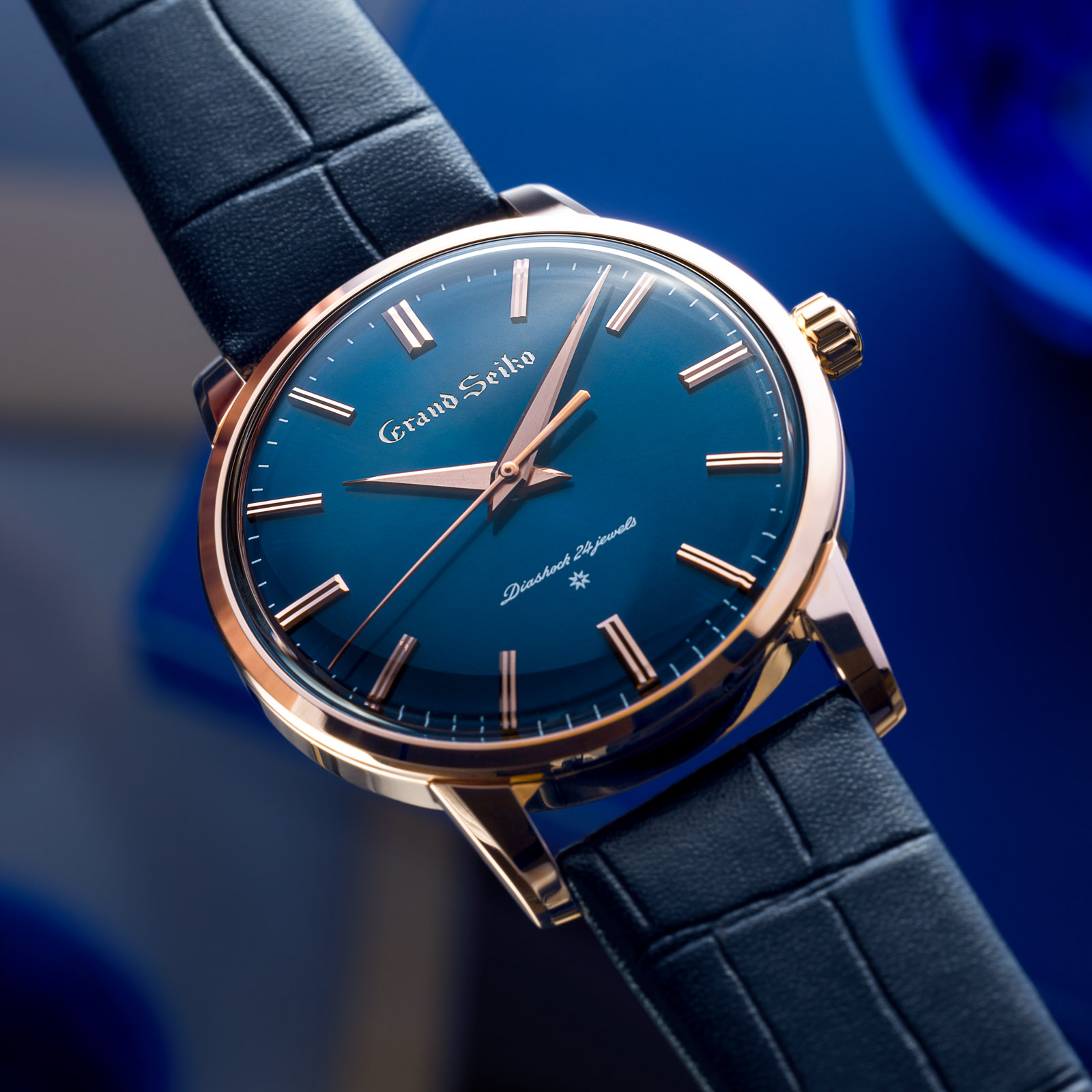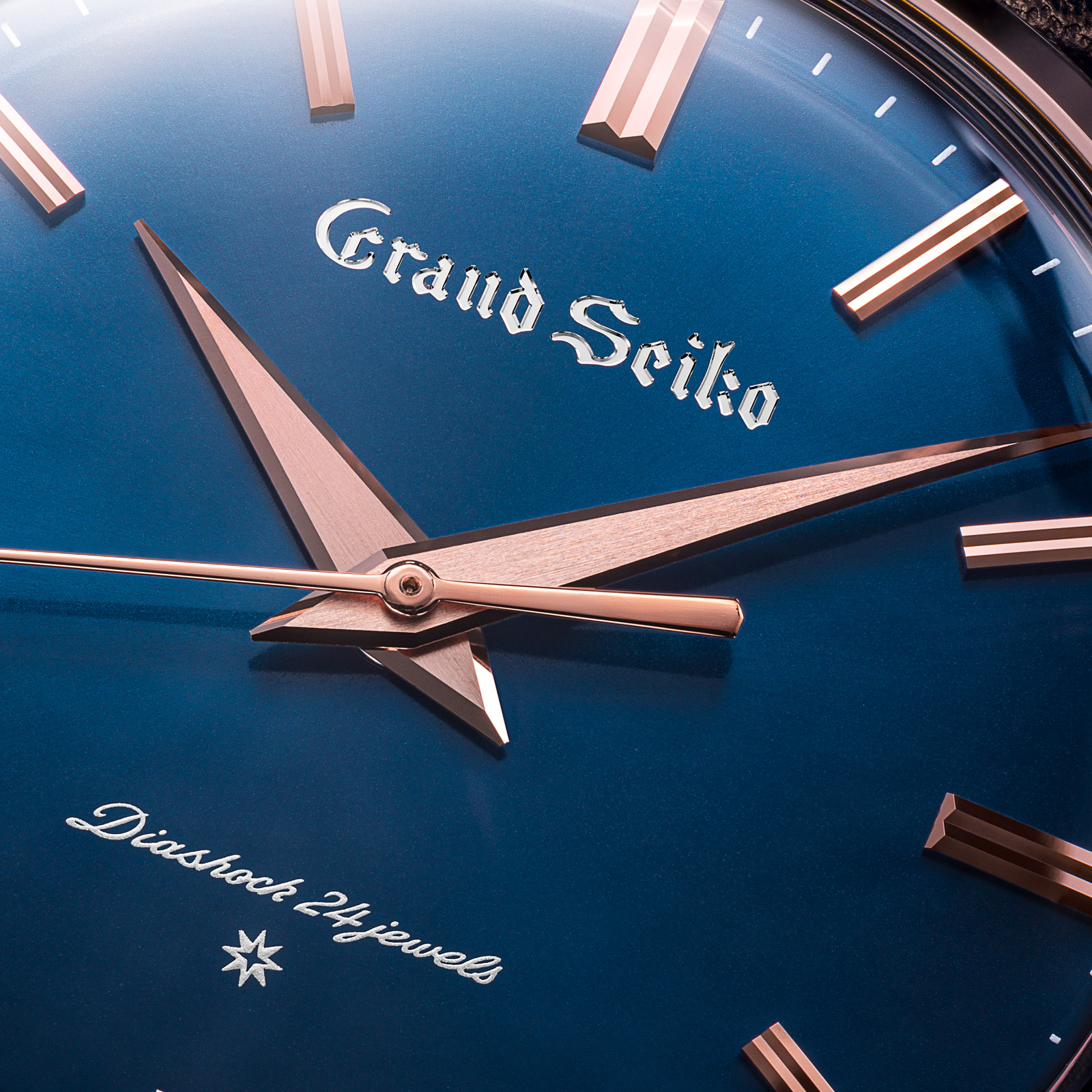 At Watches & Wonders Geneva, Grand Seiko is introducing a new limited-edition re-creation of this first timepiece, with a case and clasp in elegant 18k rose gold. The spectacular navy-blue dial with shimmering indexes evokes a “starry night”, or “Hoshizukiyo” in Japanese. Attested by the small star, the SD (Special Dial) mark, at the six o’clock position, the indexes are in solid gold, providing a dash of further refinement to the 50 individually numbered pieces honoring the origins of Grand Seiko.
