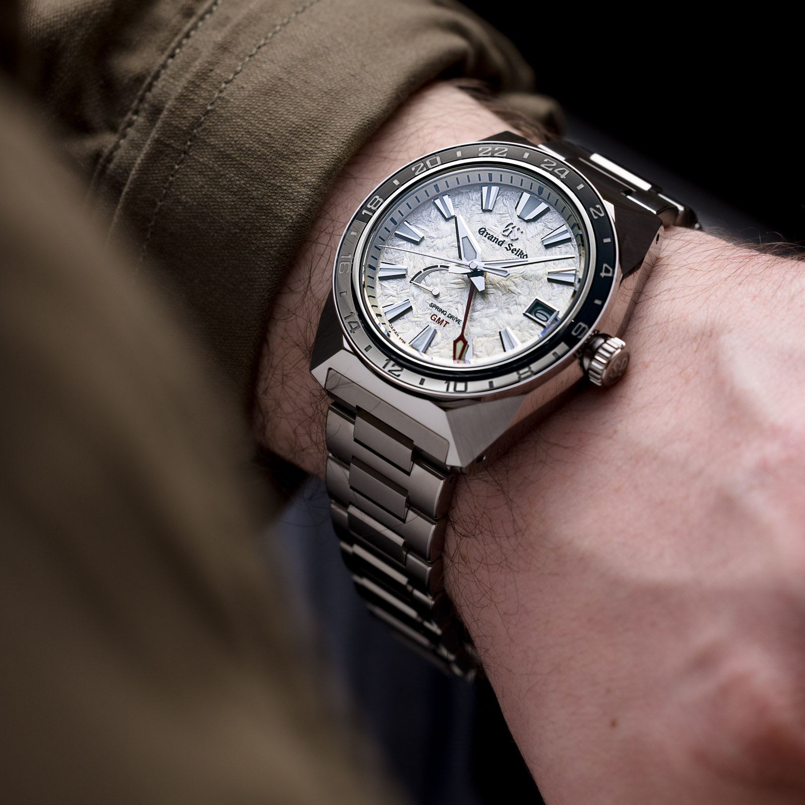 The SBGE307 is driven by Grand Seiko’s Spring Drive 9R66 Caliber. This movement features true GMT functionality, enabling independent adjustment of the local hour hand while the GMT hand remains fixed to “home” time.